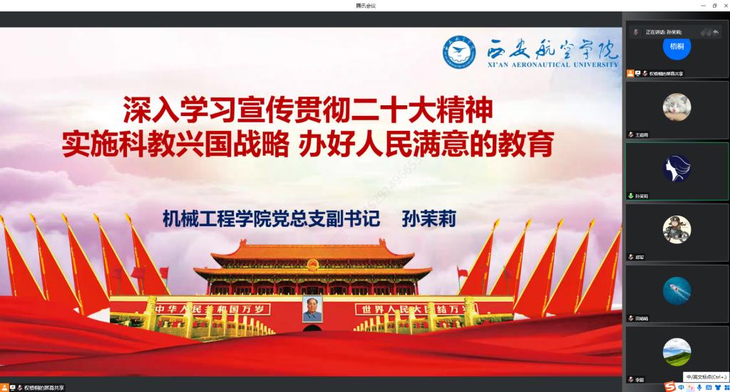 12月22日,十大买球官方网站召开教职工政治理论学习会议,学院党总支副书记孙茉莉以“深入学习宣传贯彻二十大精神,实施科教兴国战略 办好人民满意的教育”为题讲授专题党课。全体教职工参加了此次学习。