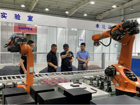 张博董事长一行首先参观了十大买球官方网站实验室,实验室吕晓军主任进行了讲解,介绍了机器人产线、智能制造系统及液压试验台等设备,并对实验能力、对外服务能力等做了介绍。