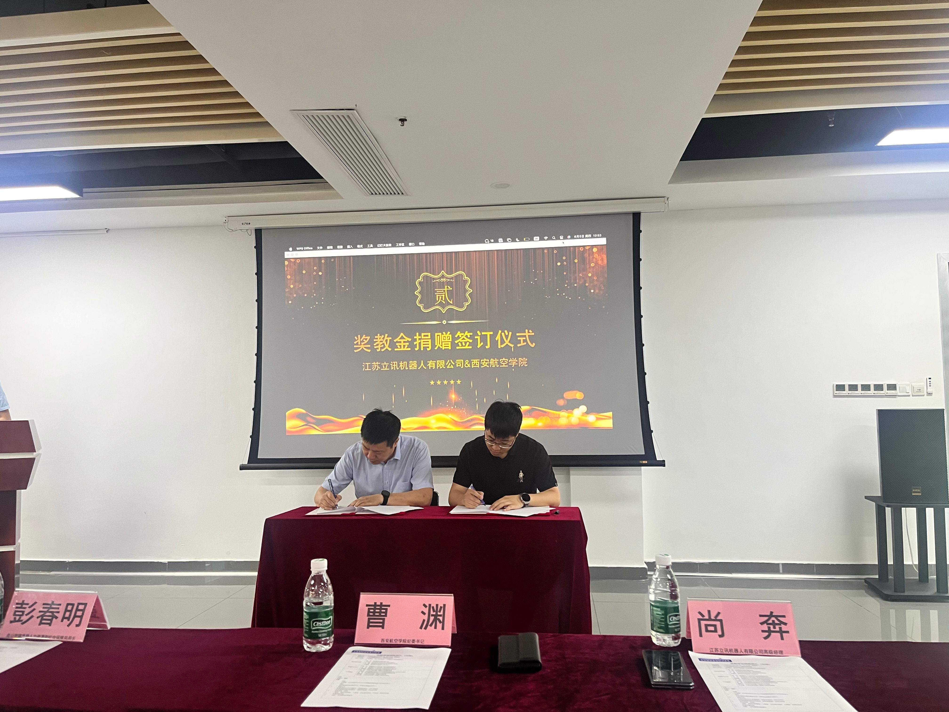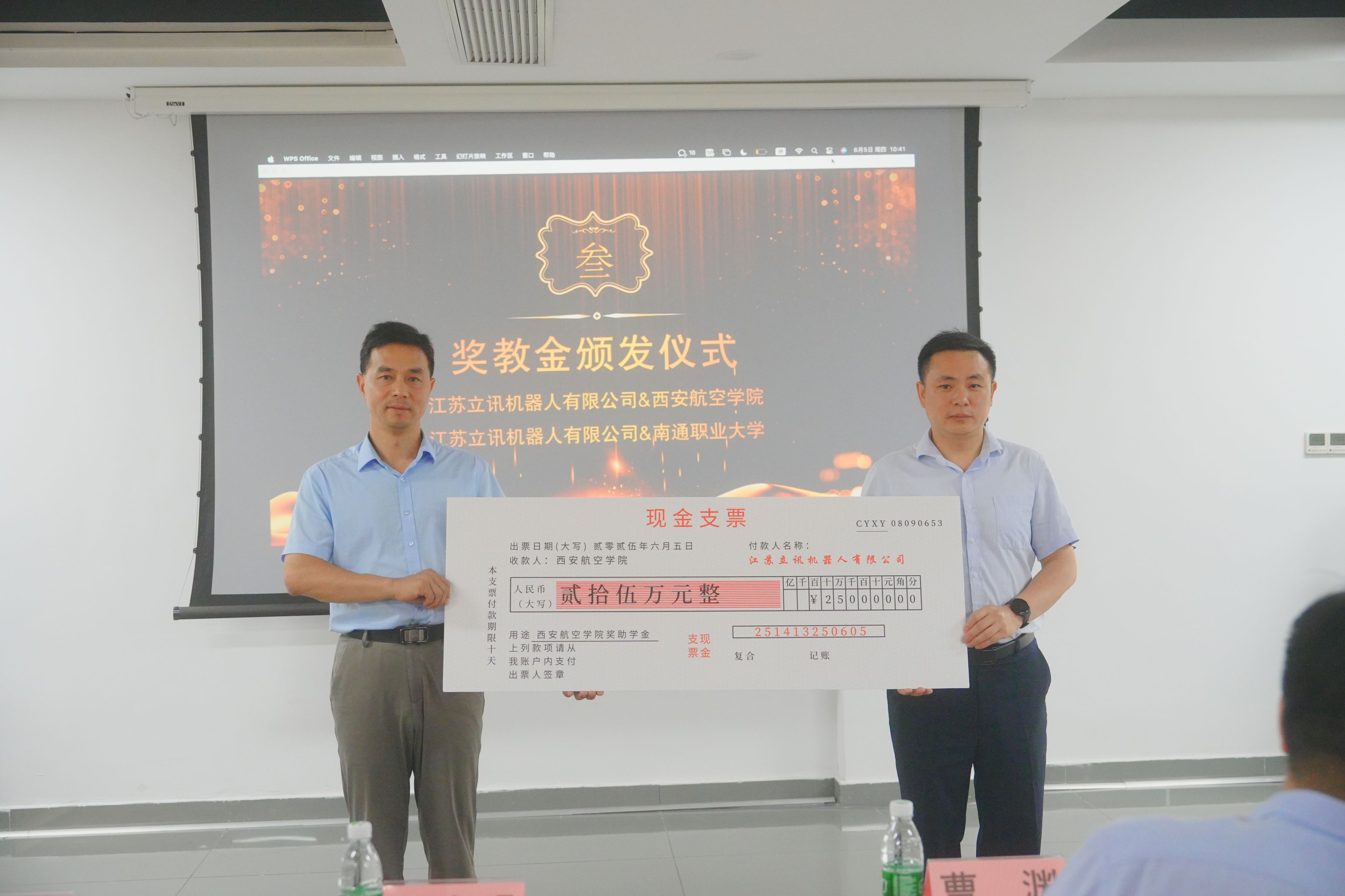 在喜迎建校70周年之际,6月5日,学校纪委书记曹渊、十大买球官方网站院长王永锋等一行赴江苏立讯机器人有限公司,出席“江苏立讯机器人奖教学金”捐赠及颁奖典礼,并深入进行校企合作调研。昆山市锦溪镇人社局局长彭春明、立讯机器人公司高级经理尚奔等企业领导出席活动。