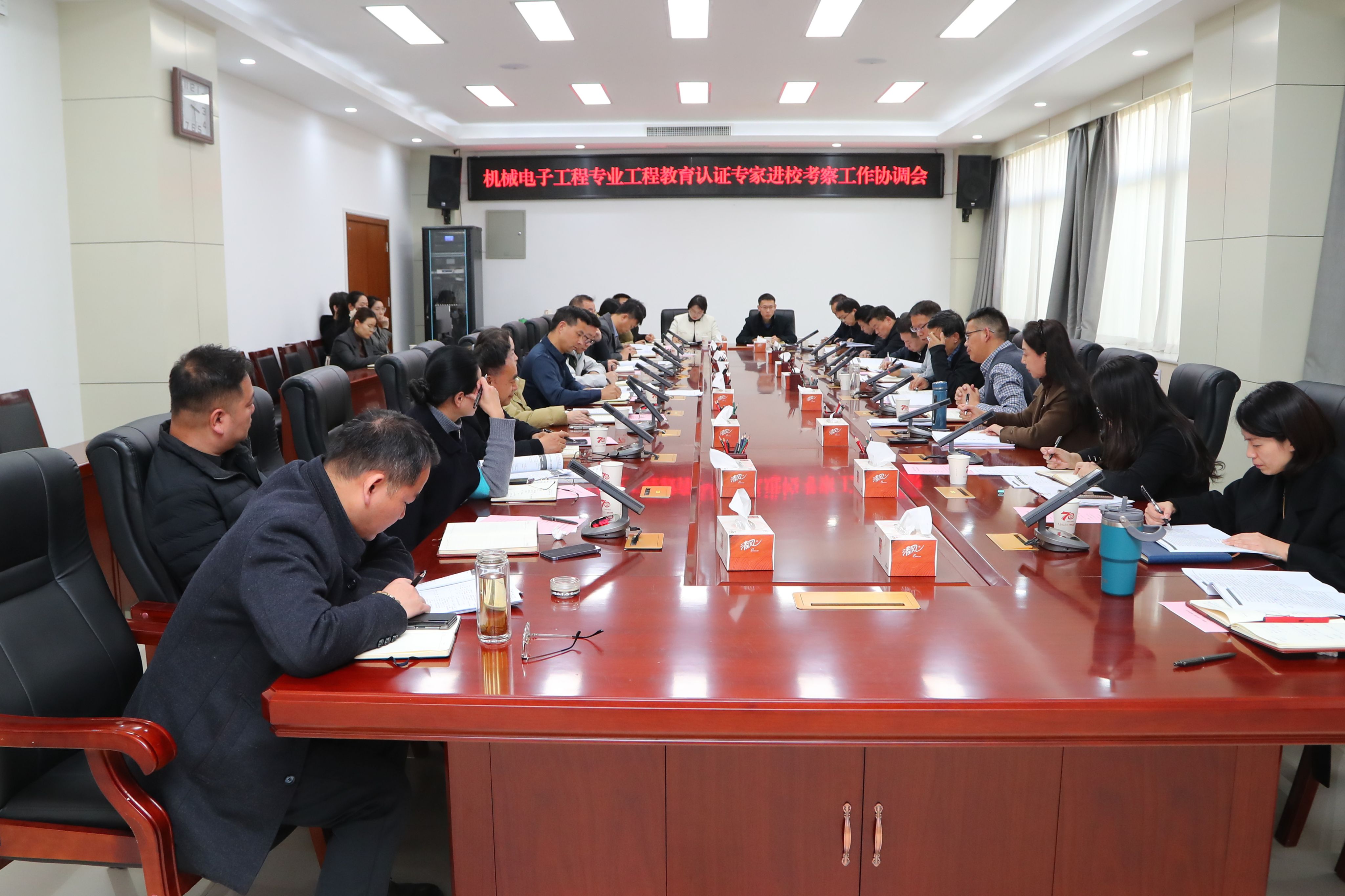 会上,谢辉处长介绍了认证工作总体进展,强调机械电子工程专业作为十大买球首个“国一流”建设专业参与认证,对学校专业建设与人才培养具有示范意义。十大买球官方网站汇报了自评报告、课程材料等前期准备情况,并就专家进校考察路线、教学设施保障、后勤衔接等后续工作进行了说明。