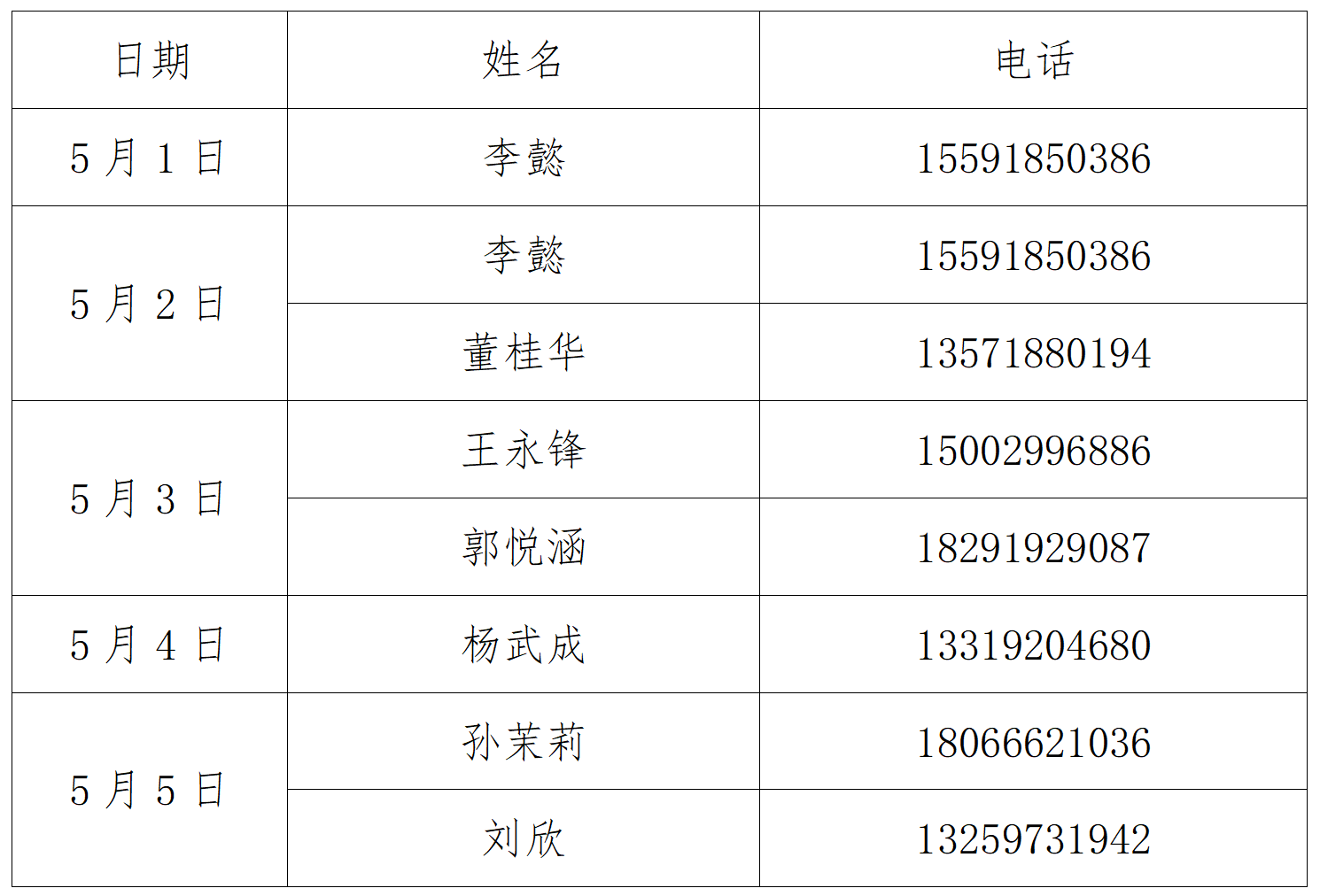 根据《关于学校2024年“劳动节”放假安排的通知》文件精神,五一假期为5月1日至5日,共5天,放假期间,十大买球官方网站值班安排如下: