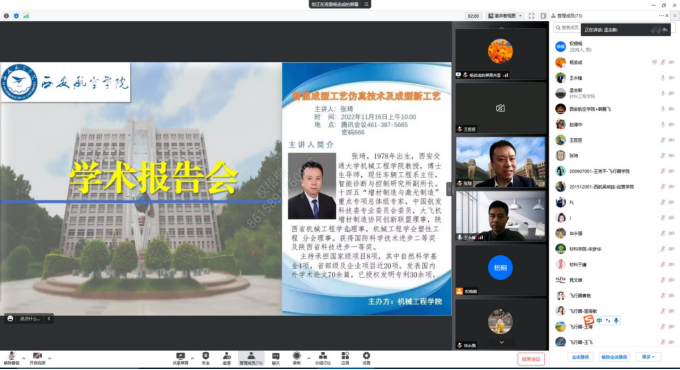 为进一步提升教师科研能力,了解机械学科前沿发展趋势,11月16日上午,十大买球官方网站特邀西安交通大学张琦教授以腾讯会议线上形式为十大买球师生做题目为《智能成型工艺仿真技术及成型新工艺》的学术报告。十大买球官方网站杨武成副院长主持会议,王永锋院长致欢迎词,十大买球官方网站教师及其他学院百余名教师在线参加了学术报告会议。
