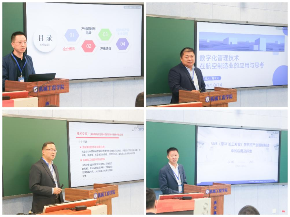 下半场侧重产业实践,来自中航飞机起落架有限责任公司、西安飞豹科技有限公司、陕西竞宇智能装备发展有限公司、乔治费歇尔精密机床(上海)有限公司的技术专家,分享了在数字化车间、智能装配线、关键零部件精密加工等航空产业领域的最新实践案例与解决方案。
