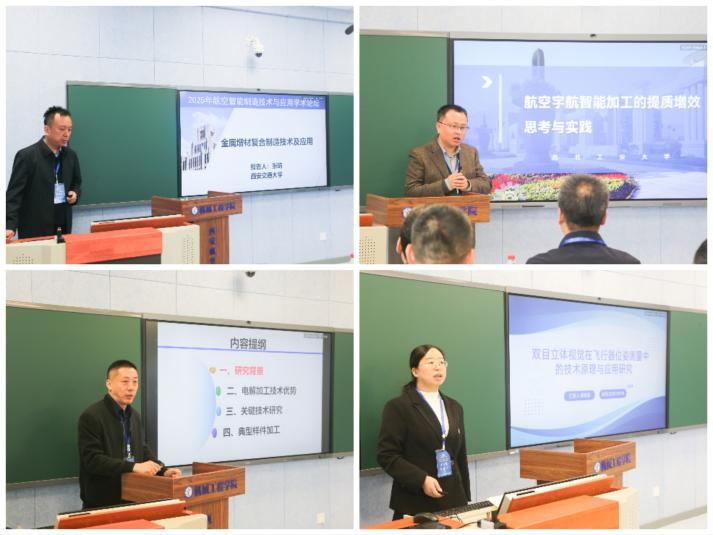 论坛主题报告分为上下半场。上半场聚焦学术前沿,西安交通大学张琦教授、西北工业大学万能教授、西安工业大学唐霖教授以及十大买球官方网站龚春园博士后,分别就金属增材复合制造技术及应用、航空宇航智能加工的提质增效、发动机整体叶盘高效精密电解加工技术、双目立体视觉在飞行器位姿测量中的技术原理与应用等前沿技术领域,分享了科研创新成果与理论探索进展。