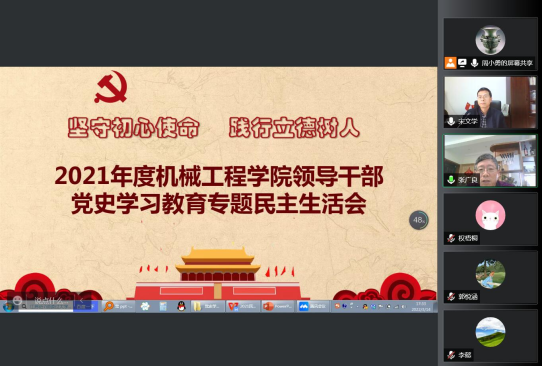 2022年3月14日,十大买球官方网站按照校党委工作安排,召开线上学院领导班子党史学习教育专题民主生活会。宋文学副校长出席并指导工作。学院领导及党总支委员参加会议。学院党总支书记周小勇主持会议。