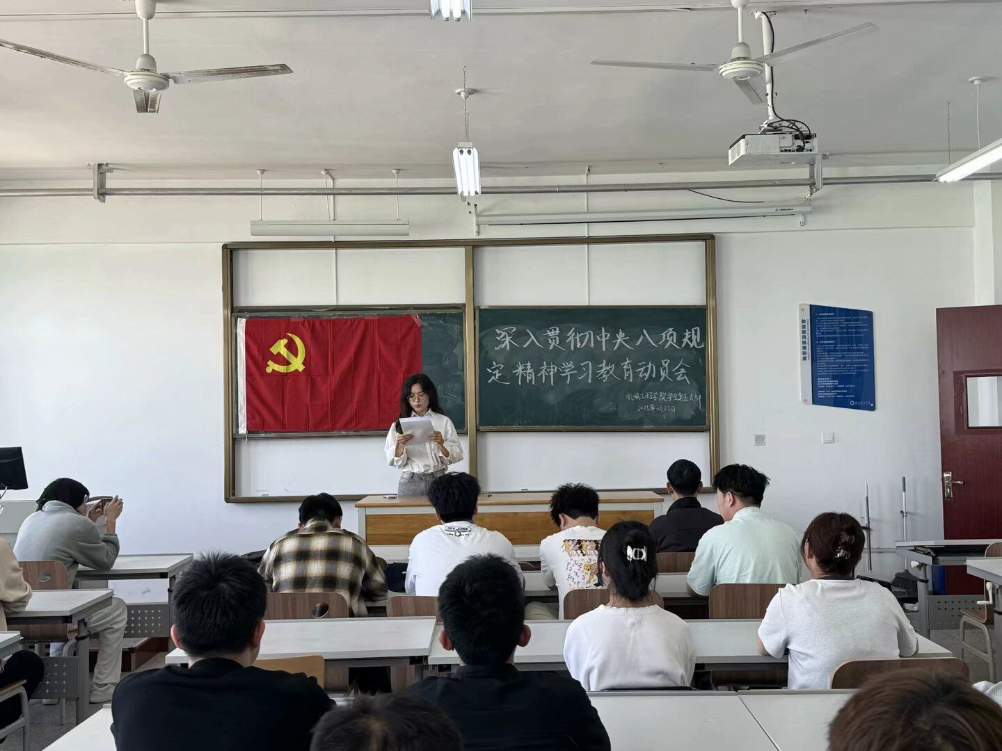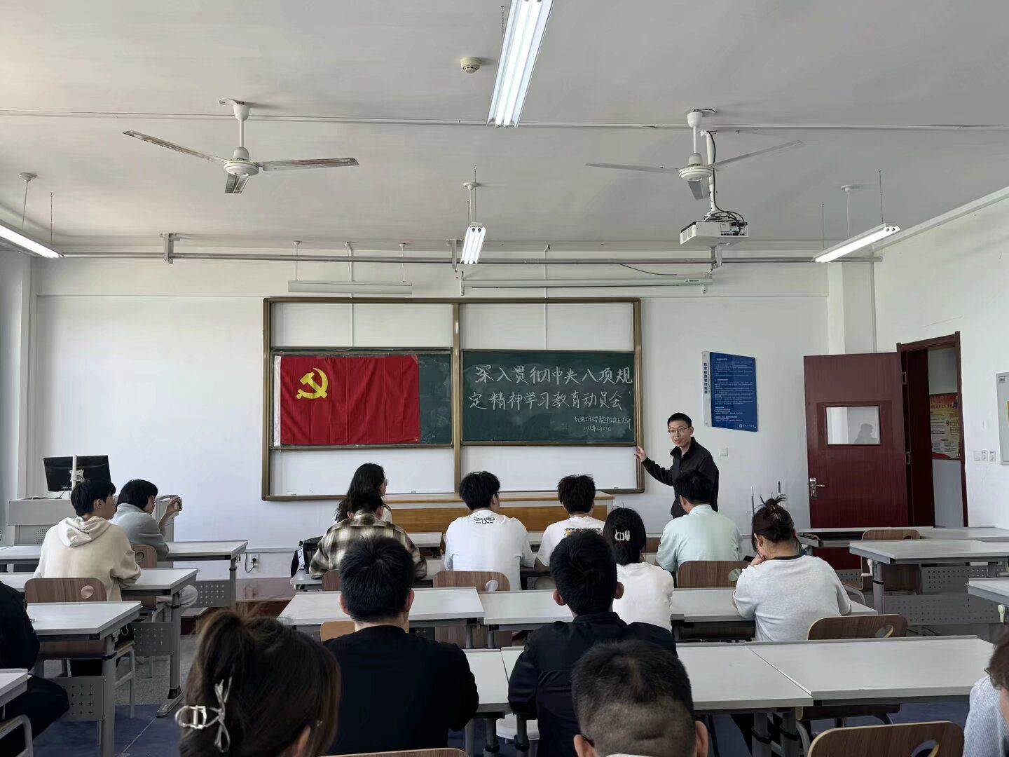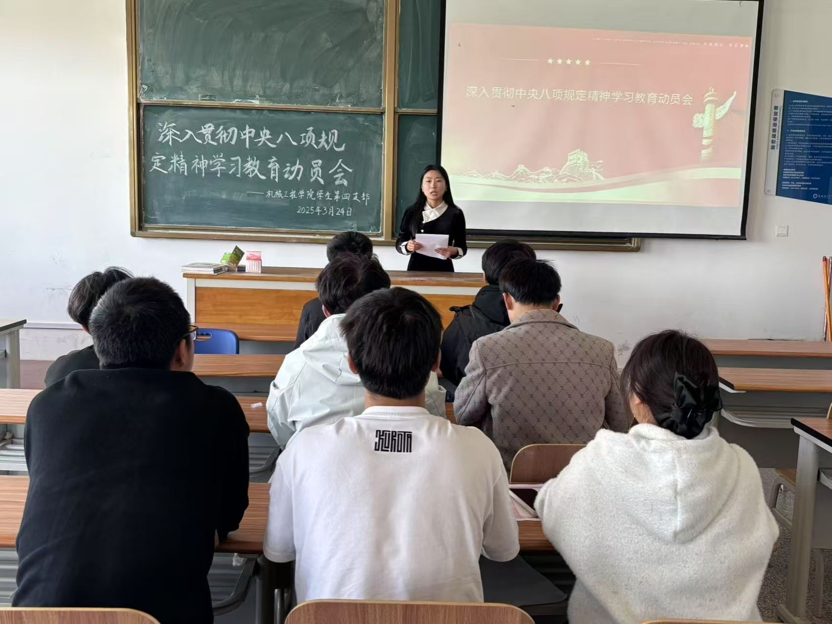 会议解读了学校文件《关于开展深入贯彻中央八项规定精神学习教育的情况介绍》——开展深入贯彻中央八项规定精神学习教育,是党中央作出的重大决策部署,要把开展学习教育作为一项重要政治任务。一是要加强理论武装,领悟精神实质。二是要坚持对标对表,在严查严纠上下功夫,坚持立查立改、即知即改,确保改有成效。三是要切实让全体党员感受到学习教育带来的新气象,着力解决师生急难愁盼问题,让广大师生可感可及。