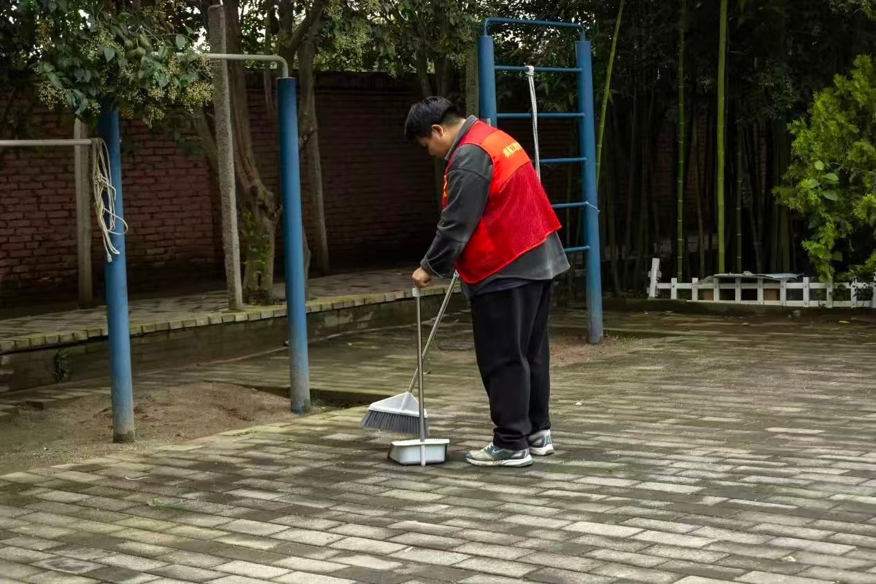 抵达鸿飞小区后,志愿者迅速与社区工作人员对接,明确清洁绿化带、擦拭公共设施的任务,随后分组投入劳动。在维护现场秩序的同时,积极宣传西安市人口抽样调查工作与生活垃圾分类倡议,得到社区工作人员的肯定。