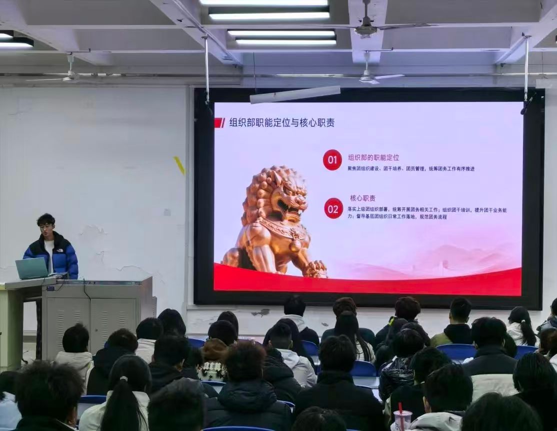 组织部部长王立楠聚焦部门核心职能展开分享,从团日活动的主题构思、方案设计、流程规划及风险防控,到各类团务材料的规范撰写要点与格式要求,逐一进行细致讲解,细致拆解团组织日常工作要点。