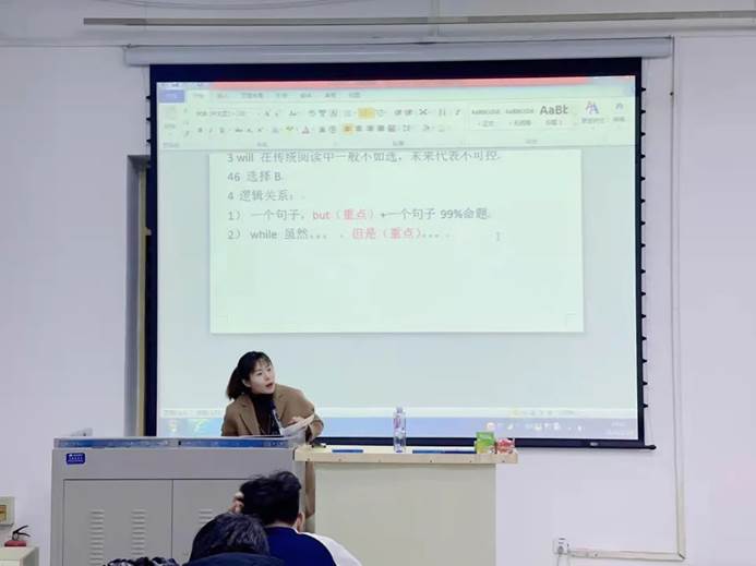 为帮助2018级、2019级的同学们找到准确、有效的英语学习方法,顺利通过英语四六级考试。十大买球于12月8日晚七点在阶梯五教室为2018级、2019级备考四六级的同学们开展英语四六级指导课讲座,特邀了新文道考研李洁老师,十大买球2018级、2019级全体学生参加。