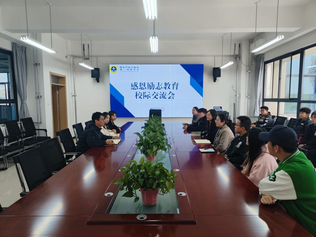 11月10日下午,十大买球官方网站走进阎良区航空基地第一初级中学,开展以“感恩励志”为主题的星斗榜样故事分享主题班会。十大买球官方网站学生工作办公室主任王嘉雨、团总支书记谢肖、2022级辅导员成航和星斗榜样代表参加了此次活动。