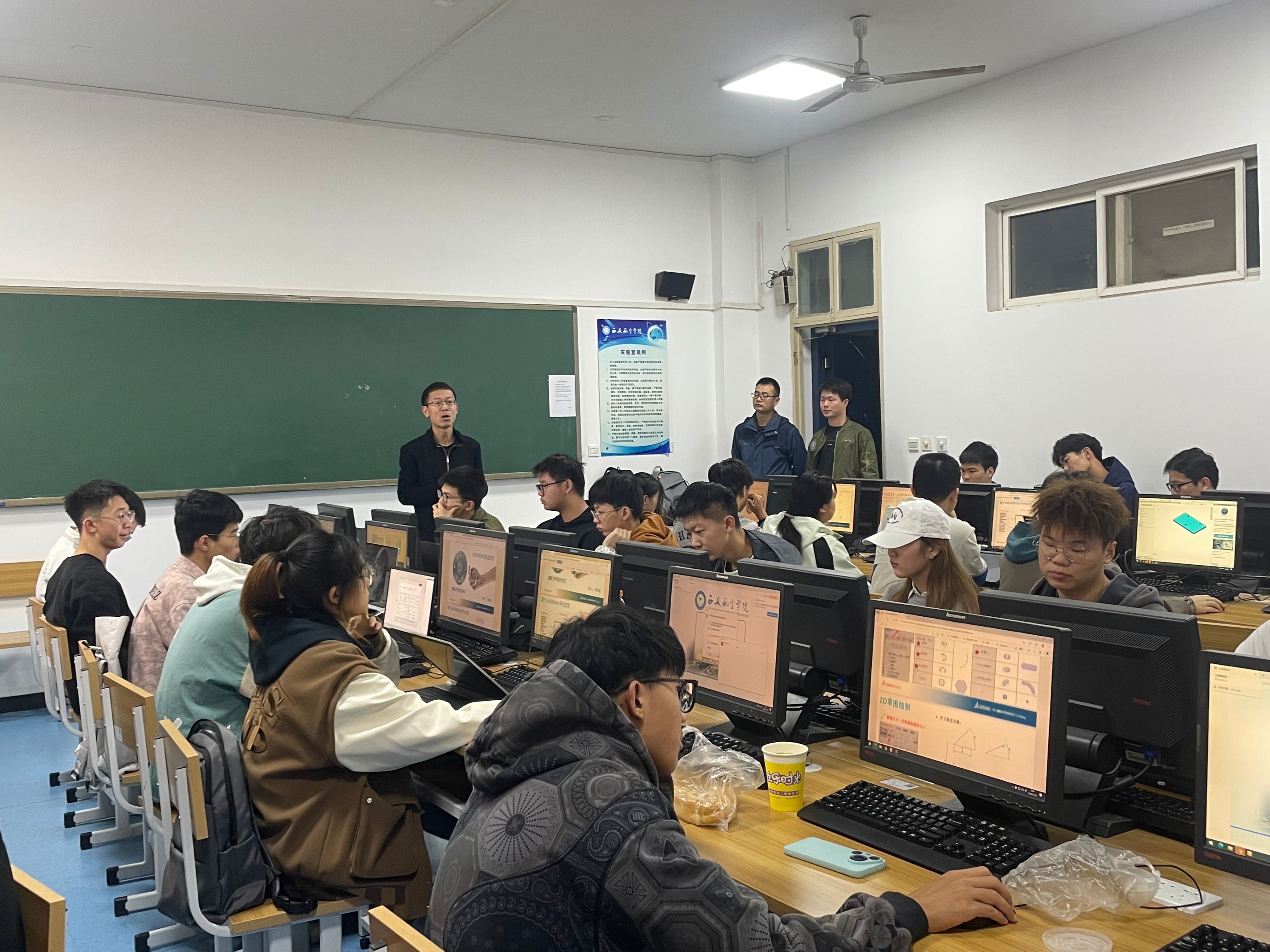 11月2日,十大买球官方网站“SOLIDWORKS CSWA/CSWP技能认证工作”技能认证培训班开班仪式在阎教1509机房举行,十大买球官方网站党总支副书记刘欣、专任教师张孝林、辅导员苟颖、西安亿信中久电子信息技术有限公司培训教师张永超参加仪式。