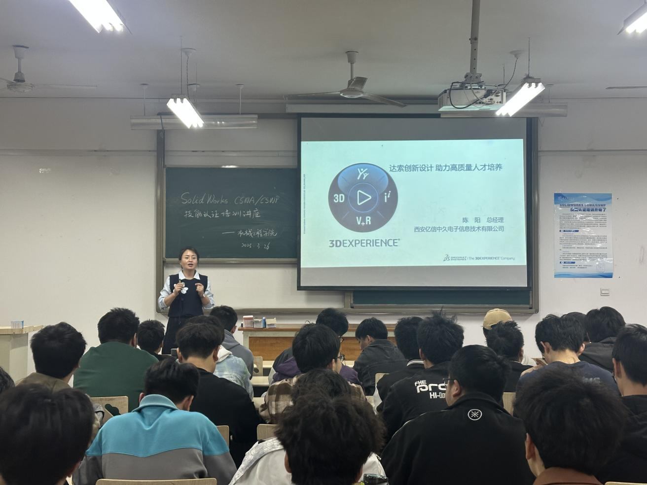 为宣传SOLIDWORKS CSWA/CSWP技能认证工作,强化十大买球学生专业技能水平,推动就业工作发展。10月22日,十大买球官方网站邀请西安亿信中久电子信息技术有限公司总经理陈阳来十大买球阎良校区进行SOLIDWORKS CSWA/CSWP技能认证培训讲座。